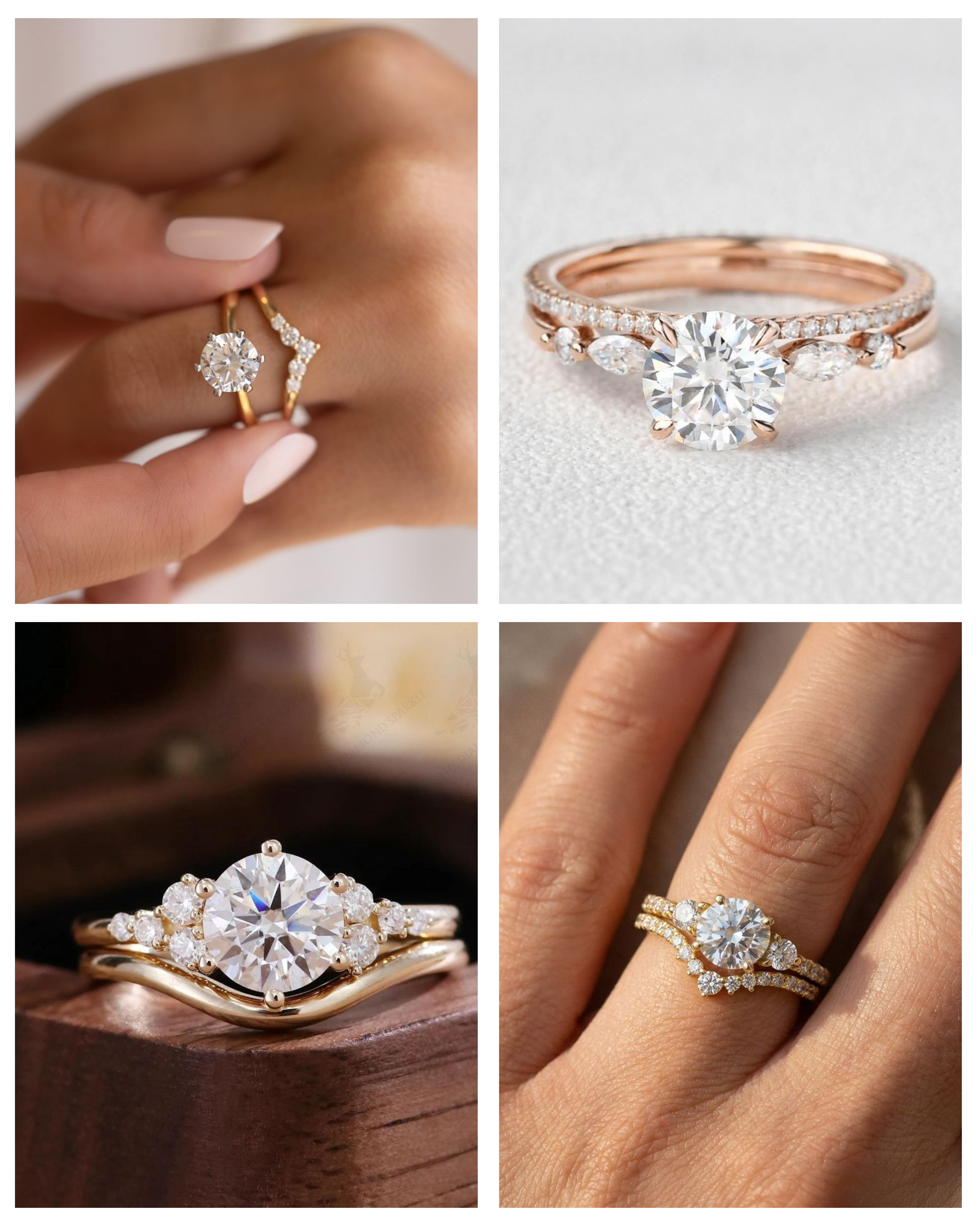 - Check your setting: High-set rings (like classic solitaires) usually allow a straight band to slide underneath. Low-set rings often block straight bands, requiring a custom-contoured or curved design to achieve a flush look.