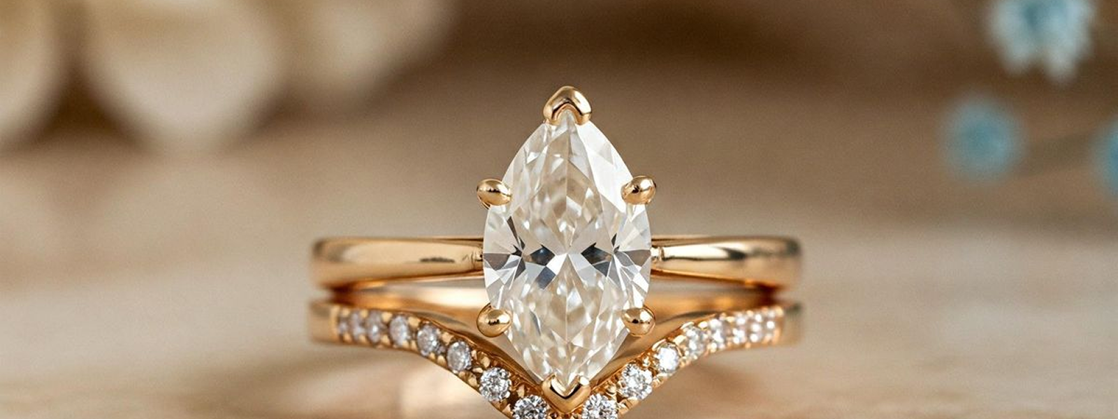 Similar to the pear shape, the Marquise features pointed ends that often extend over the finger. Standard straight bands usually leave large gaps or hit the stone awkwardly. Chevron or V-shaped bands are essential here to mirror the sharp points. Ring jackets are also a fantastic option for Marquise stones; they surround the diamond on both sides, cradling it perfectly and enhancing its symmetry. Open bands can also work well, leaving negative space for the stone's tips to rest comfortably.